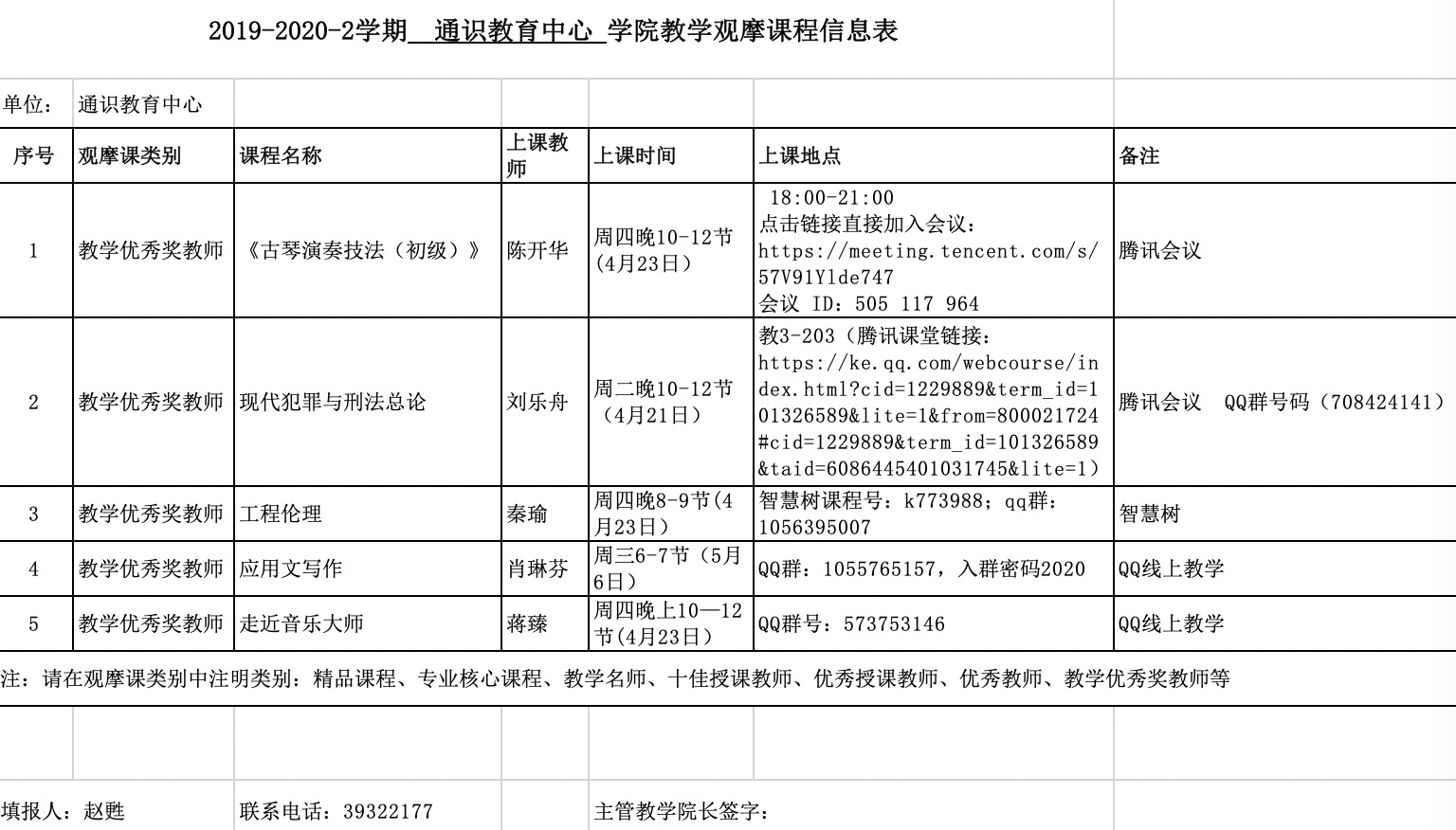 为提升本中心本科教学质量,学习和推广优秀教师的教学方法及教学经验,加强教师间的交流学习,探索线上教学的新模式和手段,本学期我中心共有5门场教学观摩课活动。具体安排如下: 欢迎通识教育中心及其他兄弟学院各级领导、广大教师,特别是青年教师、与主讲老师同专业的教师,积极参与听课观摩、交流指导,并欢迎给予批评和指正。